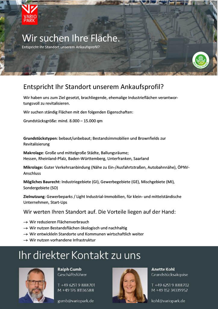 Wir suchen Flächen.
