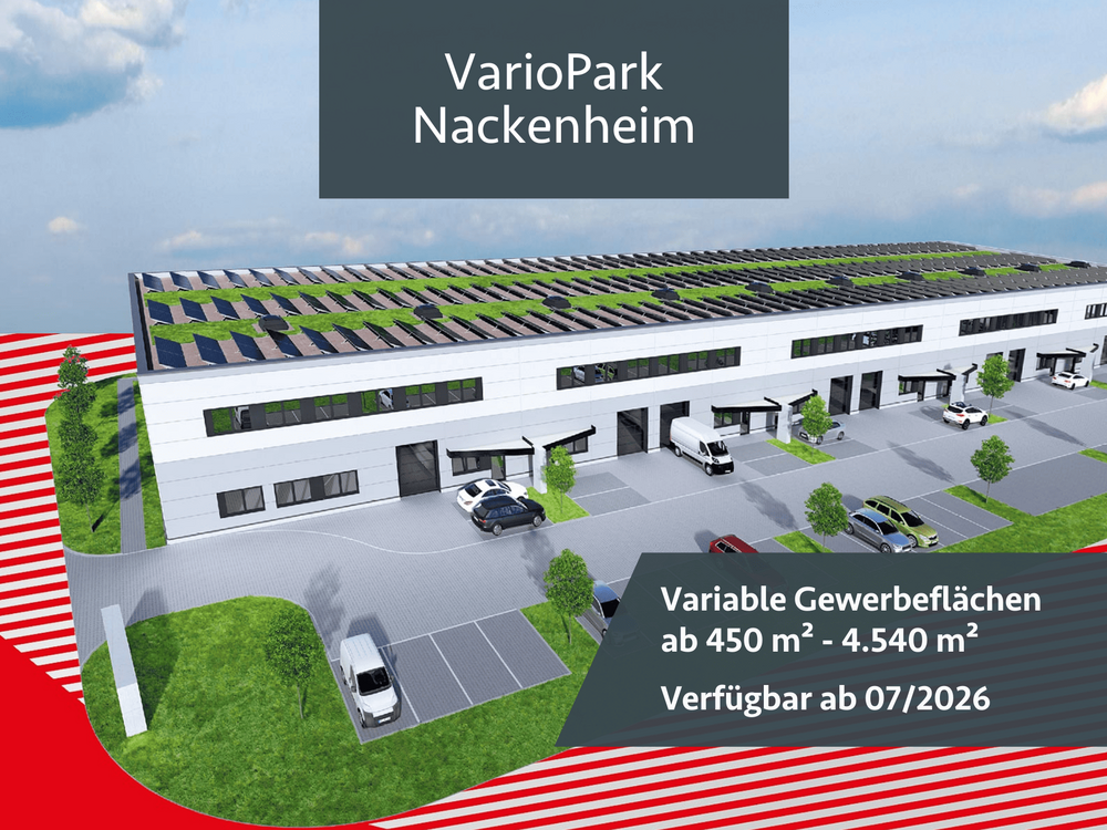 Mit einem witterungsbedingt digitalen Spatenstich startet die Realisierung des VarioParks Nackenheim. Auf einer Grundstücksfläche von 7.590 m² werden sechs flexibel kombinierbare Module errichtet, die zusammen bis zu 4.516 m² vermietbare Fläche bieten. Das Investitionsvolumen beläuft sich auf 9 Millionen Euro.