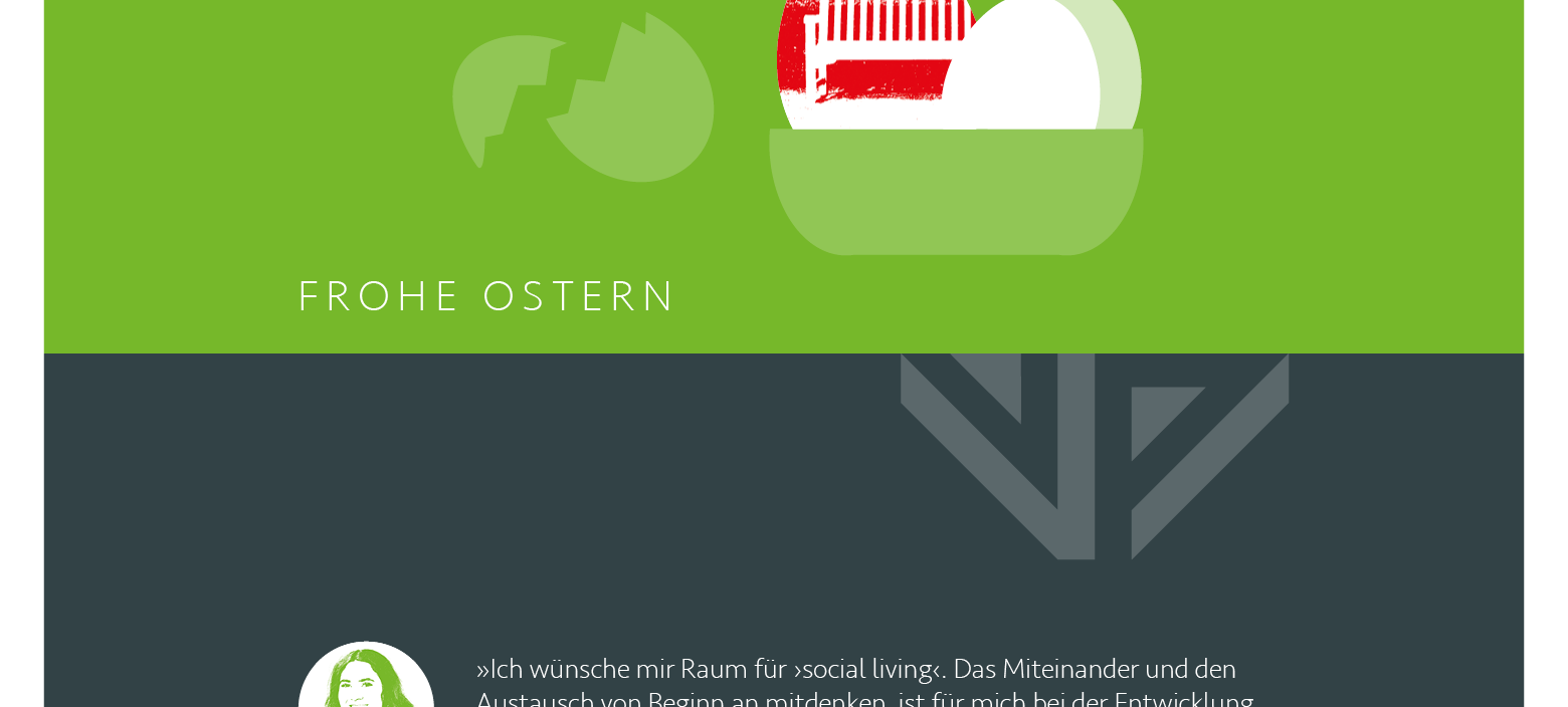 Ostern ohne Schokohase? Niemals. Auf das zartschmelzende Langohr können wir ebenso wenig verzichten wie auf Konzepte für soziales Leben in unseren Gewerbeparks. Denn Networking ist von unschätzbarem Wert. Wir verfolgen einen sehr breiten sozialen Ansatz – und engagieren uns für die Wohnungslosenhilfe.