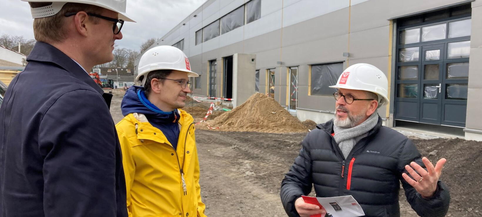In der vergangenen Woche begrüßten wir Robert Lippmann, Hauptgeschäftsführer der IHK Darmstadt Rhein Main Neckar und Dr. Daniel Theobald (IHK-Bereichsleiter Unternehmen und Standort) bei VarioPark. Bei der Begehung der Baustelle in Pfungstadt und dem bereits bezogenen VarioPark in Bensheim kam es zu einem spannenden Austausch zwischen den IHK-Repräsentanten und dem VarioPark-Team - nicht nur zur Nachhaltigkeit von Gewerbeimmobilien. Gerade auch die Flächenentwicklung in der Region spielt bei der IHK Darmstadt eine zunehmend große Rolle. In diesem Zusammenhang zeigte VarioPark-Geschäftsführer Ralph Gumb auf, wie aus Sicht von VarioPark die Entwicklung zukunftsfähiger und nachhaltiger Gewerbegebiete aussieht. Am Beispiel Bensheim erläuterte er, welche vielfältigen Chancen ein intelligentes und vorausschauendes Flächenmanagement für ein Kommune birgt.
