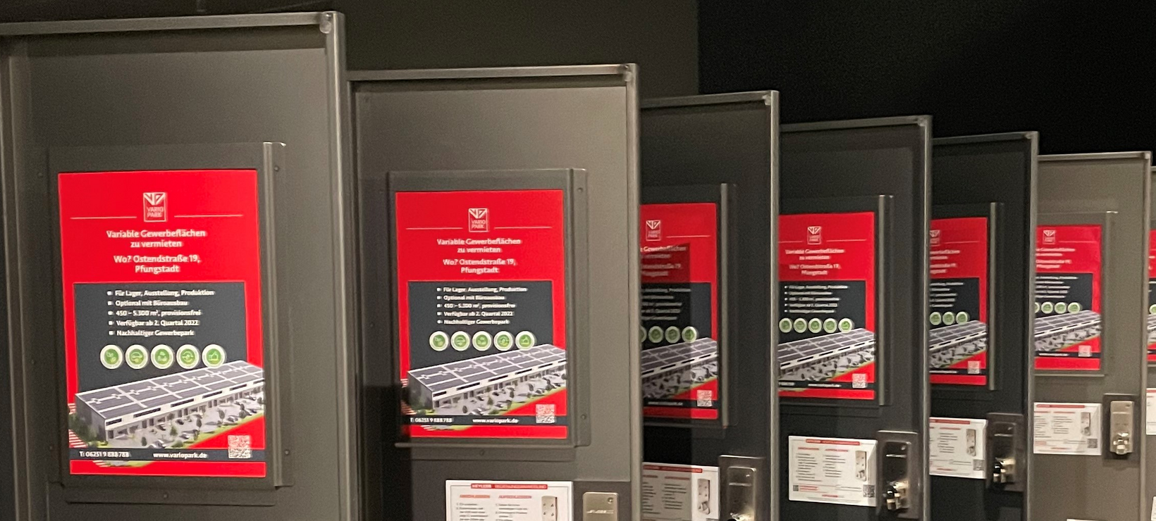 Diese Woche ist unsere Werbekampagne bei Fitness First Germany in Darmstadt an den Start gegangen! In den Umkleiden leuchtet alles in VarioPark-Rot! In unserem VarioPark in Pfungstadt sind noch ein paar Gewerbeflächen verfügbar, die wir aktuell mit der Plakatkampagne promoten.